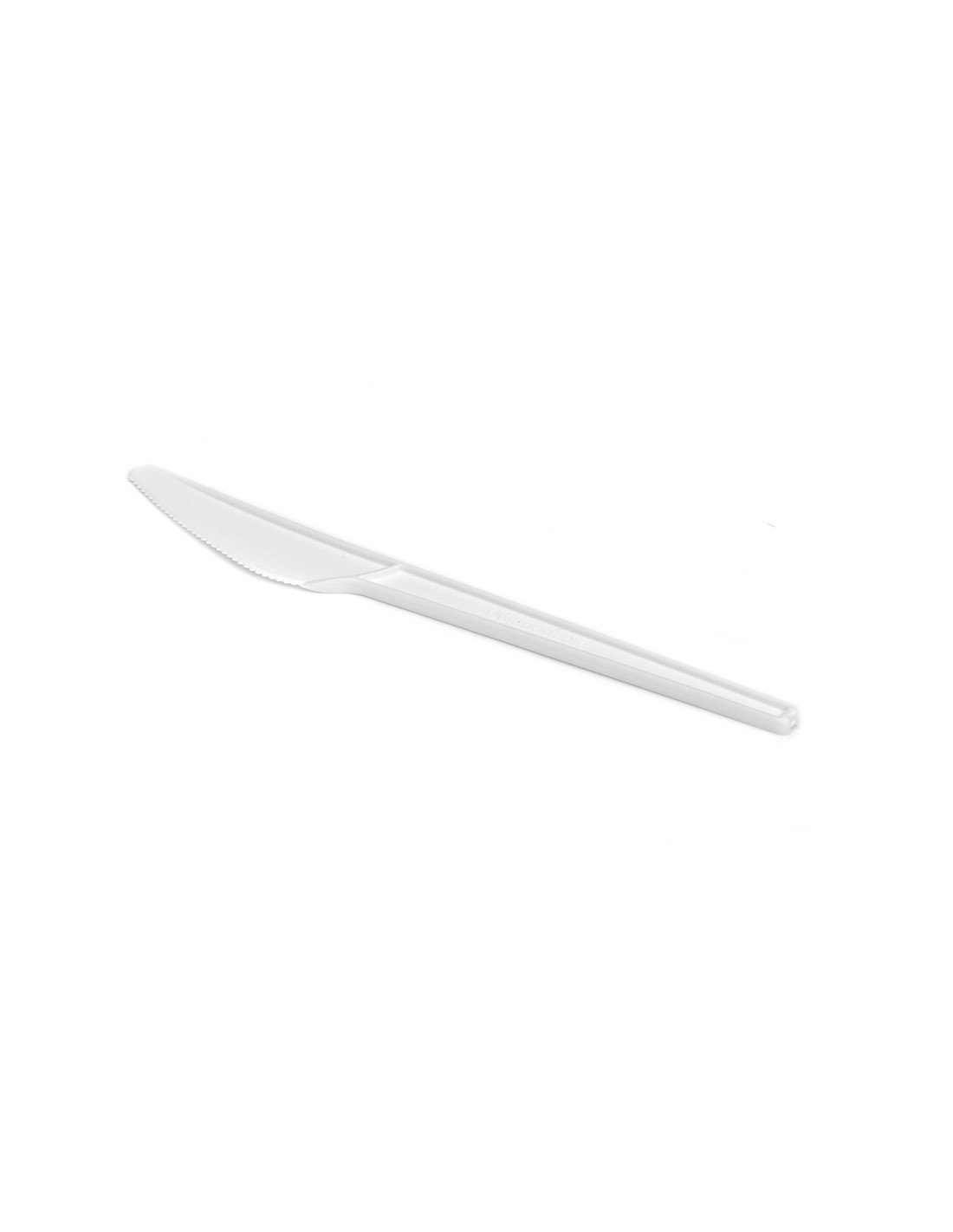 Couteaux PLA, longueur 169 mm, poids 7 gr. Le PLA est un bioplastique d’origine naturelle, 100% compostable, obtenu à partir de sucres dérivés du maïs. Impact environnemental 0, provenant des ressources renouvelables. 100% biodégradable.