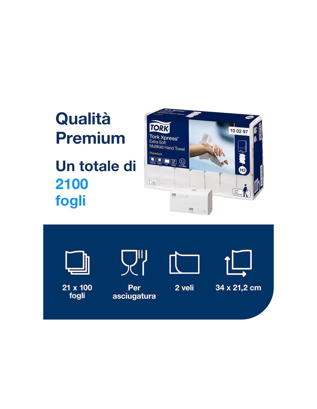 SERVIETTES TORK PLIÉES EN « M » EXTRASOFT H2 PCS. 2100 ART.100297