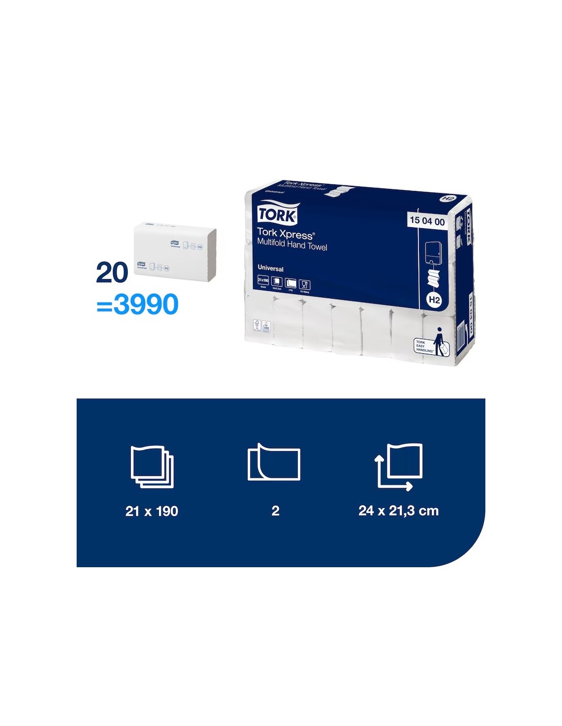 SERVIETTES TORK PLIÉES À « Z » UNIVERSEL H2 21x23 PZ.3.990 art. 150400